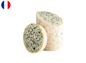 Bleu d’Auvergne is a French blue cheese made from raw cow’s milk. It has characteristically veins dispersed throughout its body. The mold that forms in the cheese is a result of the production process: the cheese is pricked with long needles that allow Penicillium glaucum to form in the cheese.