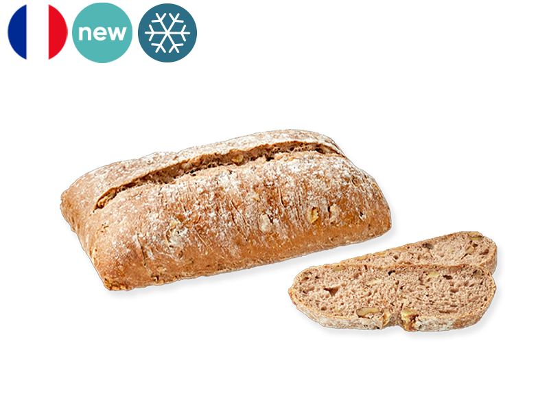 The taste of walnuts lends a gourmet, slightly sweet note to this traditionally oval loaf, which can be served sliced or toasted.