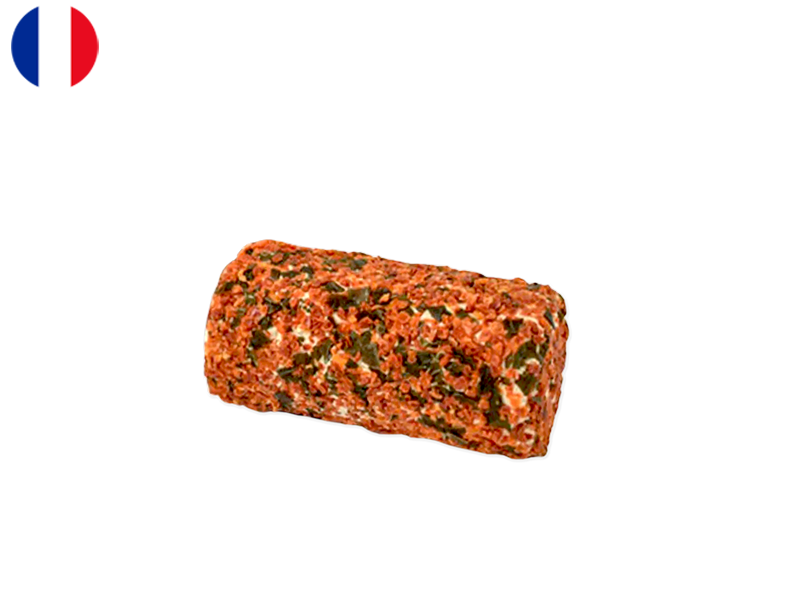 Buchette with Tomato & Basil is a fresh goat cheese from the Loire Valley of France, delicately rolled in sun-dried tomato flakes and fragrant basil. The vibrant red and green coating creates a striking visual appeal, evoking the freshness of a summer garden on your cheese board.