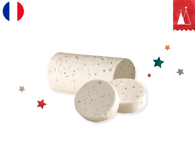 Buchette with Truffle is a fresh goat cheese from the Loire Valley of France sublimated by sprinkles of black truffle inside.