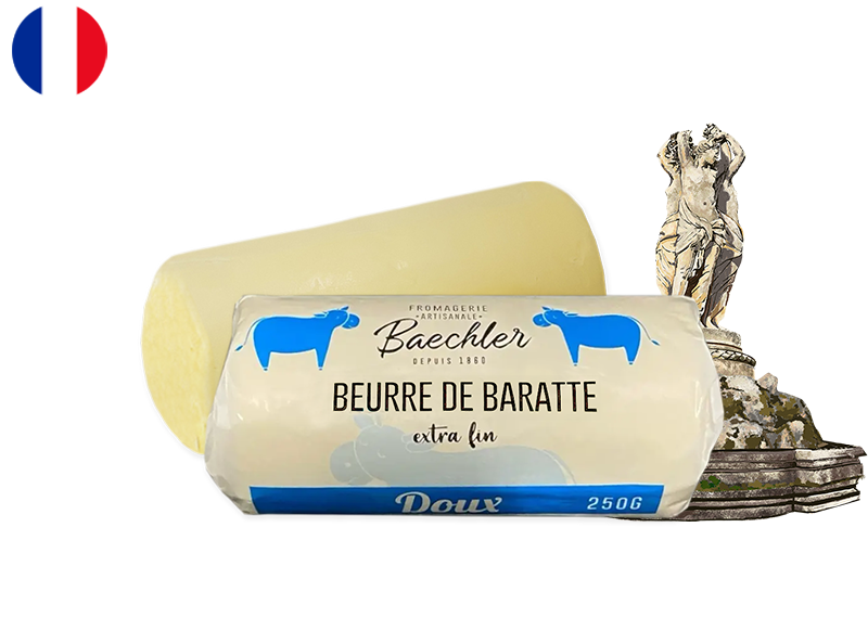 Today, only 10% of French butter is still made using traditional churns. Baechler’s churned butter is crafted using the original churn Charles Baechler bought in 1951, carefully preserved and operated by his grandson Xavier, who is dedicated to keeping this artisanal tradition alive.