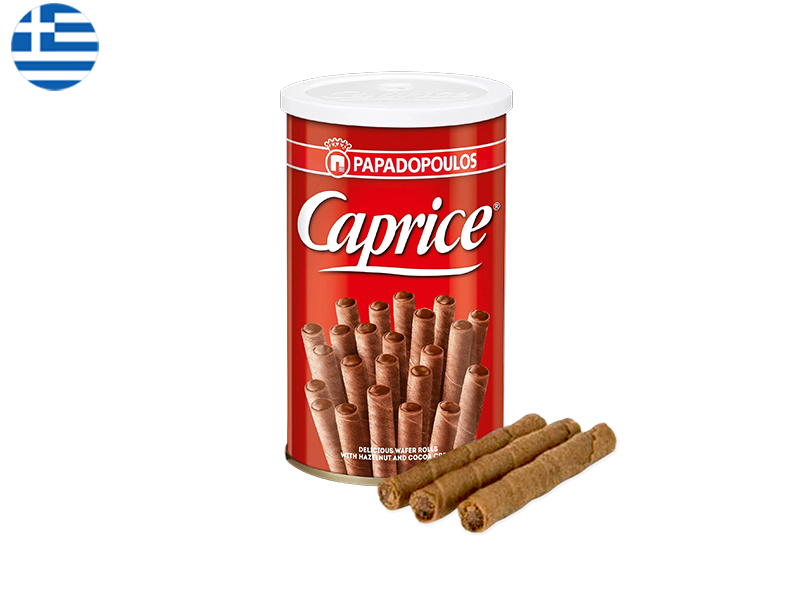 Caprice Classic wafer rolls were first launched by the Greek company Papadopoulos in the late 1970s and quickly became a household staple across Greece. Originally marketed as a luxurious treat, they gained popularity for their unique spiral shape and rich cocoa-hazelnut filling. Over time, they’ve become synonymous with family gatherings, holidays, and moments of indulgence throughout southern Europe.