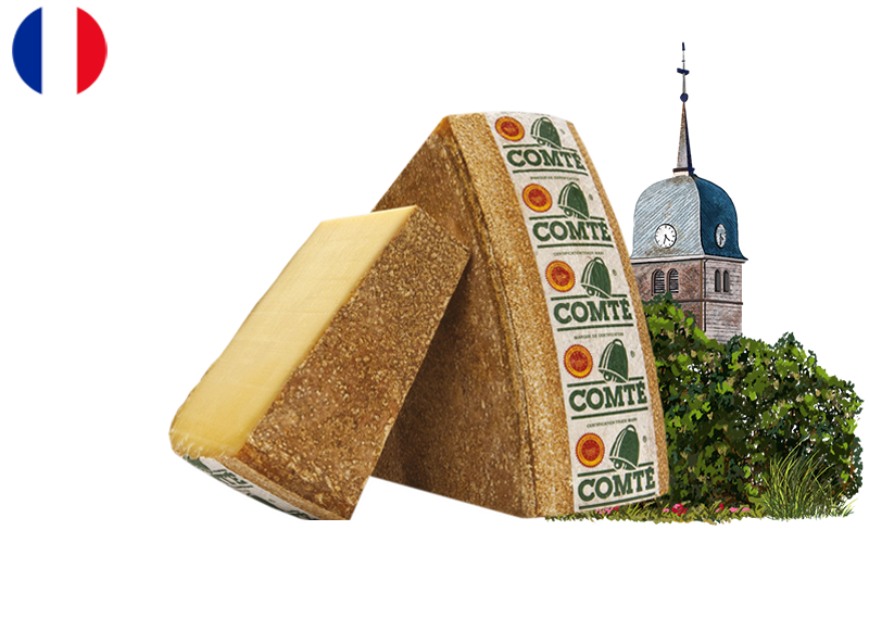 Today, Comté holds the title of the highest producing French AOC cheese and remains one of our best sellers. This exceptional Comté is crafted for the most discerning palates. After maturing for 24 months, it boasts a smoother texture and unveils rich, persistent aromas of walnuts, roasted almonds, melted butter, and spices, all softened by delicate notes of mature cream.