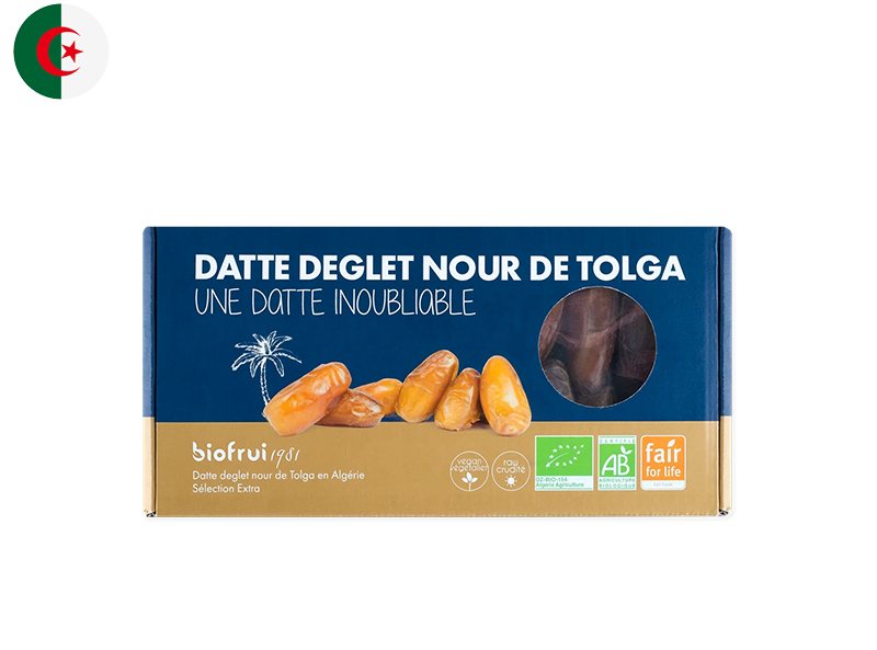 Dates are the tropical stone-fruits grown on the date palm with origins going back more than 5,000 years ago. Deglet Nour dates are a variety of dates prized for their translucent golden hue and natural caramel-like sweetness.