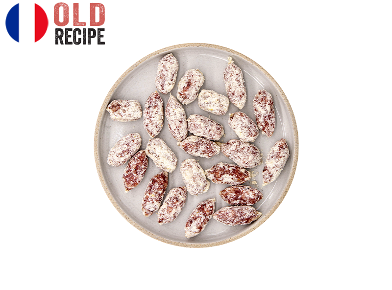 Grignoton is made from dry sausage. Saucisson is an ever-lasting staple in France, since the time of the Great War that bonded the soldiers in the trenches. They are thoroughly air-dried for a span of 6 to 8 weeks within the captivating landscapes of Pilat Regional Park. The local climate provides the ideal conditions for an all-natural drying process. It gives a unique aroma of woody essence to these Grignotons.