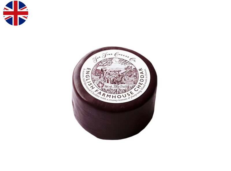 A sweet and tangy Cheddar cheese with a particularly creamy texture and an occasional crystal caused by long maturing. After grading and to ensure it has developed the necessary piece, sweet flavour and tangy bite, it is formed then dipped into burgundy wax.