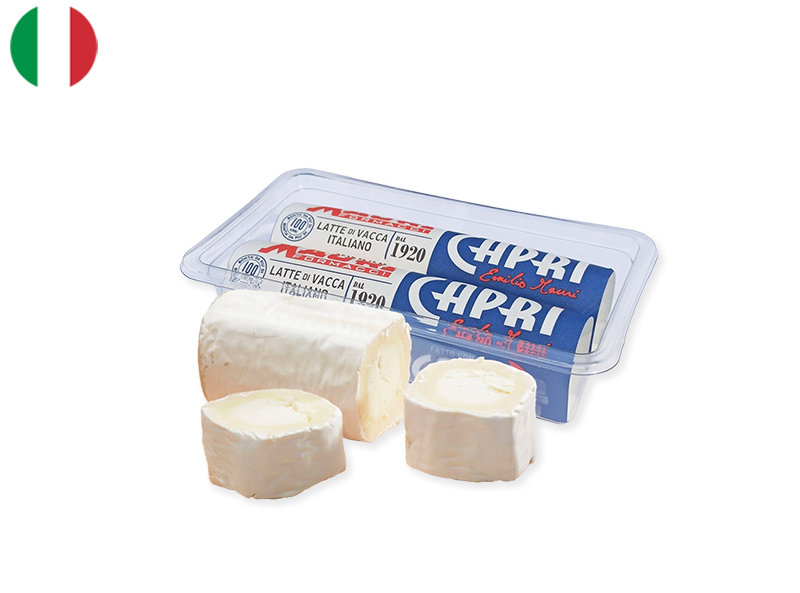 This fresh Caprino cheese is produced daily from fresh Italian cow’s milk, which arrives early each morning in Treviglio (Lombardy). The production process is swift and straightforward, resulting in a Caprino that is wonderfully fresh, natural, and rich with the pure taste of milk.