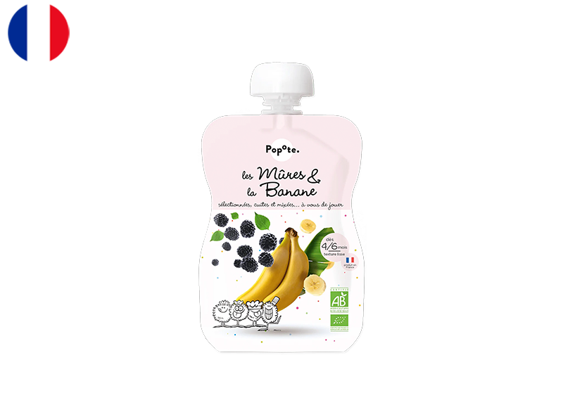 , this organic blackberry and banana puree from Popote is crafted for babies starting their food journey between 4 and 6 months of age . Made in France with 100% organic ingredients, the recipe features 51% blackberries and 41% bananas, complemented by a touch of water and lemon juice to achieve the perfect texture . The creamy, smooth consistency is designed to be easy for tiny palates to accept, with the natural sweetness of banana balancing the subtle, fruity intensity of blackberries .