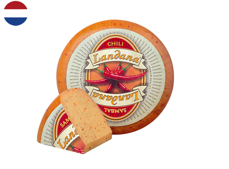 Spice up your cheese board with our Gouda with Chili. This Dutch favourite combines the rich creaminess of Gouda cheese with a kick of fiery chili flavour.