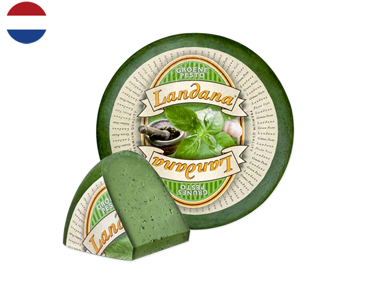 Elevate your cheese experience with this inventive creation from the Dutch masters at Landana. This Gouda expertly combines the cherished, creamy richness of traditional Dutch cheese with the vibrant, aromatic freshness of basil pesto, resulting in a harmonious and flavourful fusion.