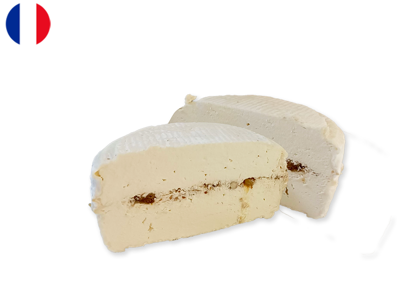 Lactic curd cheese made with thermised milk at Laiteire de la Voueize, aged for 20 days, and carepiecey tended to by hand. The addition of figs and nuts imparts an original and delightful character to this cheese.