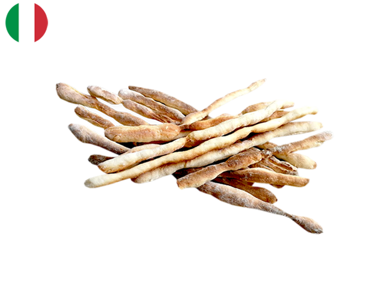 Grissini are Italy’s traditional breadsticks, delighting palates for centuries with their perfect crunch and simplicity. These crunchy breadsticks are an artisanal product, made 100% in Italy using only wheat flour, yeast, and water, preserving the authentic essence of this classic recipe.