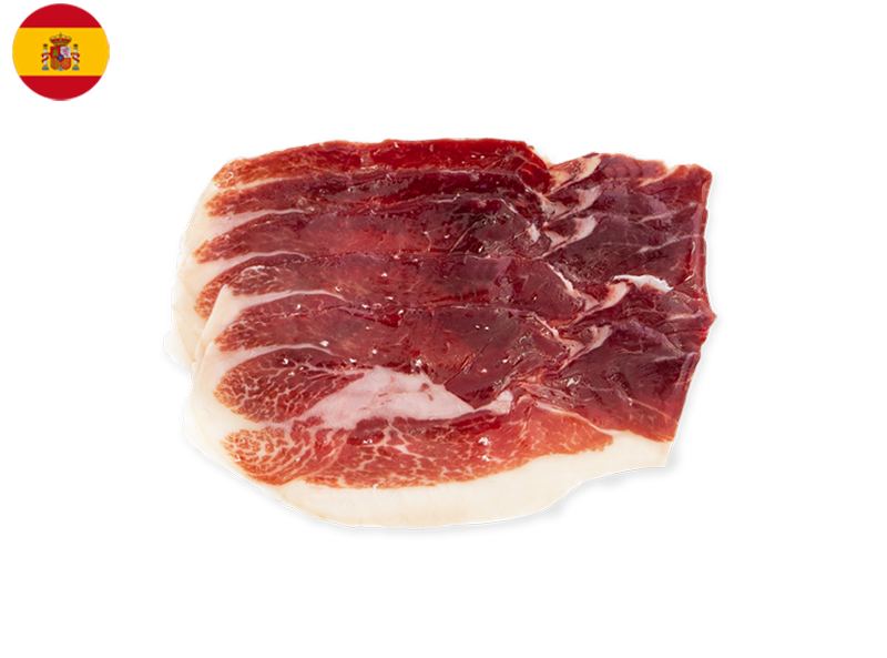 Meticulously cured, it reveals rich marbling and tender texture that melts in your mouth. The flavour harmonizes nutty sweetness and savoury depth, characteristic of high-quality Ibérico.