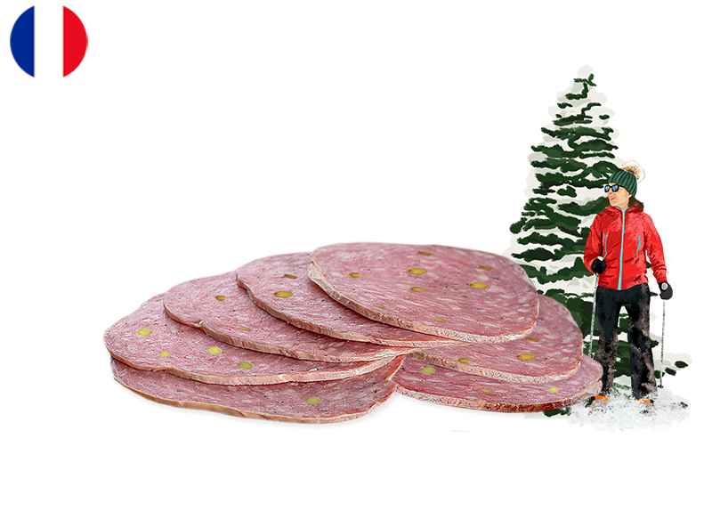 The “Jesus” Ham from Maison Aux Produits Saugets is cooked with roasted pistachios, expertly blending the tenderness of slow-cooked ham with the delightful crunch and subtle nutty flavour of pistachios. Each slice offers a delicious contrast between the rich, savoury meat and the delicate pistachio notes, delivering a truly unique gourmet experience.