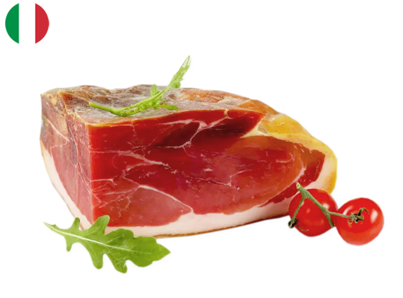 Savour the exquisite, aged flavours of our Parma Ham, carefully matured for 16 months to develop a rich, complex taste and a delicate, melt-in-your-mouth texture. Made from the finest pork legs and cured following the traditional methods of the Parma region (Emilia-Romagna), this premium ham offers deep, savoury notes and a subtly sweet aroma.