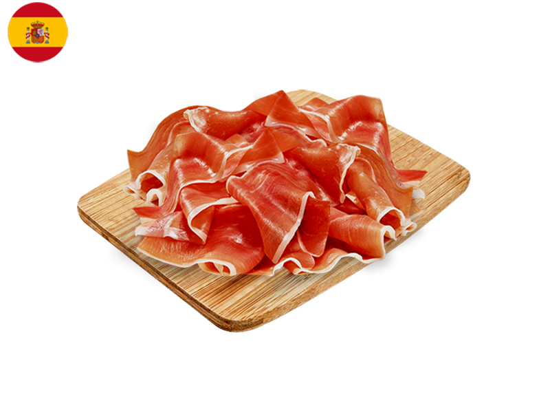 Serrano ham boasts a luscious, buttery, subtly spicy taste with sweet undertones and a powerful aroma. Known for its soft texture, Jamon Serrano is both intense in flavour and fragrance.