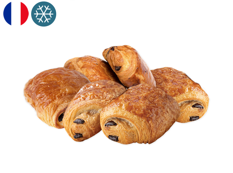 This version is made with buttery laminated dough and filled with two bars of dark chocolate. Once baked, it offers a golden, crisp exterior with defined layers and a tender interior that melts on the tongue. The chocolate remains soft and slightly molten, delivering a smooth, bittersweet contrast to the dough’s richness.