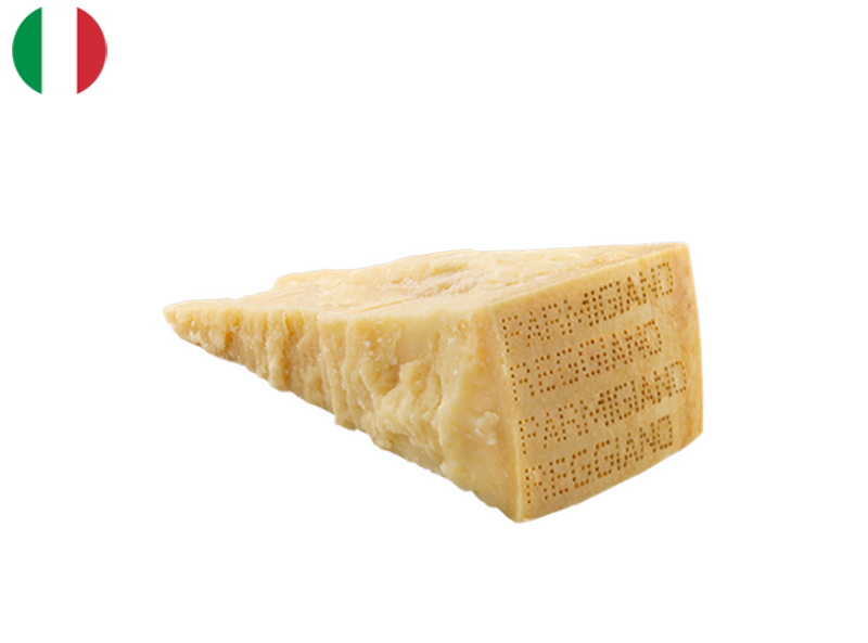 Made from raw cow’s milk in Italy’s Emilia-Romagna region, Parmigiano Reggiano follows unchanged recipes since the Middle Ages. Each 40-kg wheel is aged on spruce wood planks in humid, temperature-controlled cellars. At 24 months, cheesemakers tap-test every wheel with a small hammer—rejecting those with flaws. A DOP-protected masterpiece and only true “Parmesan” in the world.