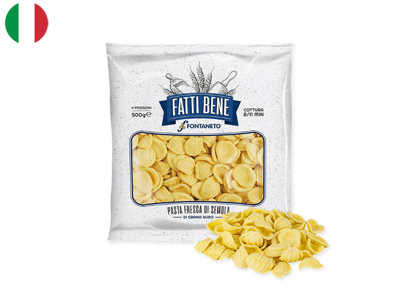 Orecchiette, meaning “little ears” in Italian, are small, concave pasta with a slightly chewy texture and a mild flavor that pairs beautifully with many sauces.