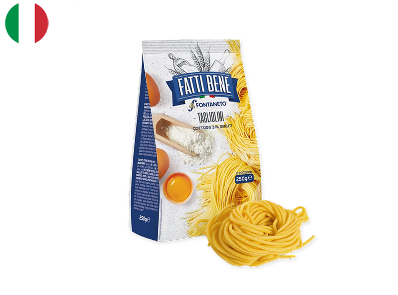 Tagliolini’s versatility makes it a staple in any kitchen. Whether tossed with a fragrant pesto, paired with seafood, or served simply with butter and herbs, its light and airy nature ensures that each meal is both satisfying and elegant. Perfect for quick lunches or elaborate dinners, Tagliolini brings the authentic taste of Italy to your table.