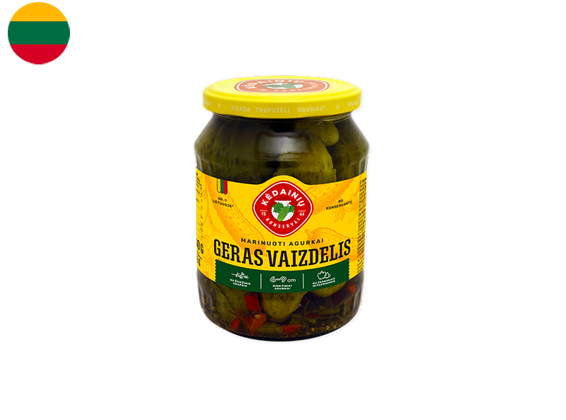Geras Vaizdelis Pickled Cucumbers are crafted from carefully chosen cucumbers, preserved in a vinegar brine. These top-quality pickles boast a delightful crunch and are bursting with flavour.
