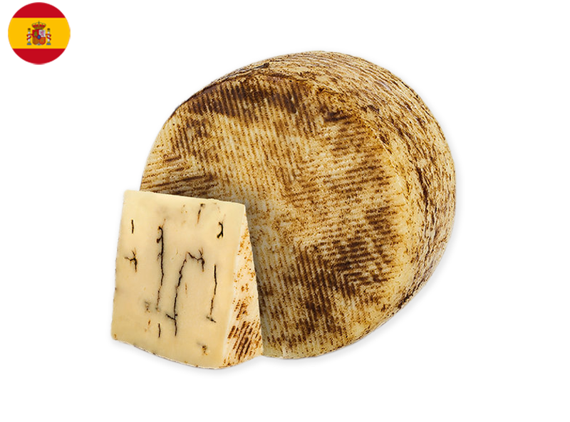 This Sheep Cheese with Truffle is a semi-hard cheese made from pasteurised sheep’s milk and aged for five months. Deep veins of black truffle run through its pale ivory paste, creating a visually striking contrast. The aroma is an enticing mix of sweet, milky notes and the earthy depth of truffle. On the palate, the cheese is firm yet slightly crumbly, offering a rich, buttery texture complemented by nutty undertones and an unmistakable truffle essence.