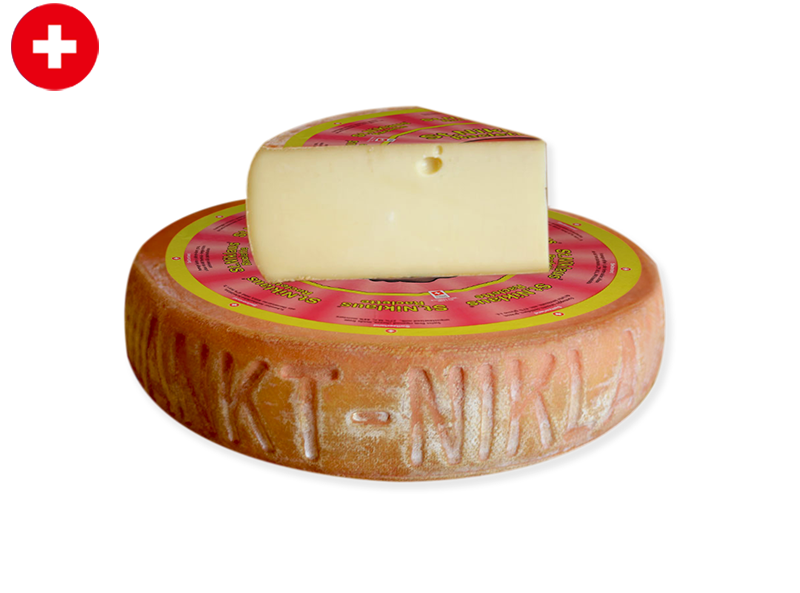 The Raclette Saint Niklaus stands out among Swiss Raclette cheeses from the Valais region. Its rich, milky flavor is more pronounced than in other raclette varieties, offering a distinctive taste experience. The cheese has a firm structure that melts effortlessly without becoming greasy, releasing a characteristic aroma of wild mushrooms as it heats.