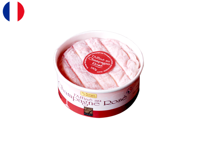 From the Fromagerie d’Auxon, this new trendy recipe creates a soft and creamy cow’s milk cheese that has been aged with a Rosé Champagne wine giving the particular pink colour to its rind as well as its mildly nutty and yeasty flavour. Brings colour to your cheese platter!