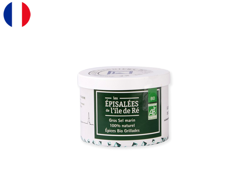 The Coarse Sea Salt from Ile de Ré, France is heated and as soon as the salt is “dry”, the ‘fresh’ and organic spices are roasted with it. The salt is a sea salt infused with peppers, thyme, rosemary, PDO Espelette pepper, paprika, basil and marjoram.