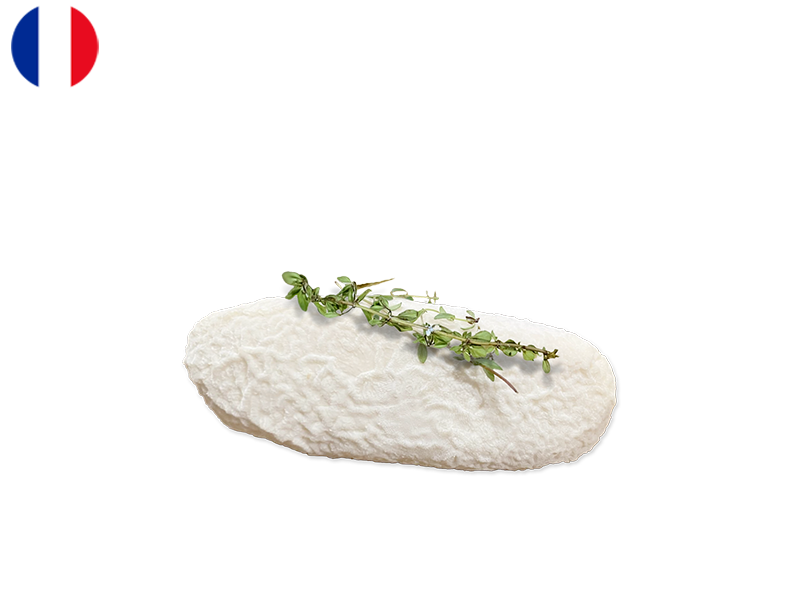 Hailing from Saône-et-Loire, this small, elongated fresh goat cheese has a distinctive quenelle shape. Made from raw goat’s milk and delicately infused with wild serpolet (wild thyme), it offers a soft, lactic, and slightly tangy core with a light, almost mousse-like texture. The flavour is clean and direct, marked by the freshness of the milk and a subtle, dry, citrusy herbal note from the wild thyme.