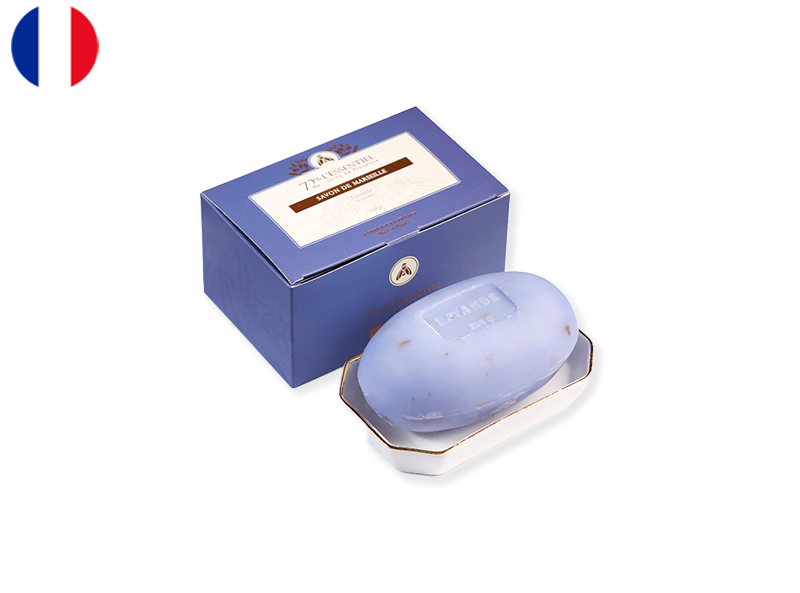 Scented “Savon de Marseille” handmade soap, with Lavender perfume. Coming in gift pack with ceramic tray, perfect as a gift or for personal care.