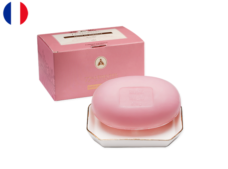 Scented “Savon de Marseille” handmade soap, with rose honey perfume. Coming in gift pack with ceramic tray, perfect as a gift or for personal care.
