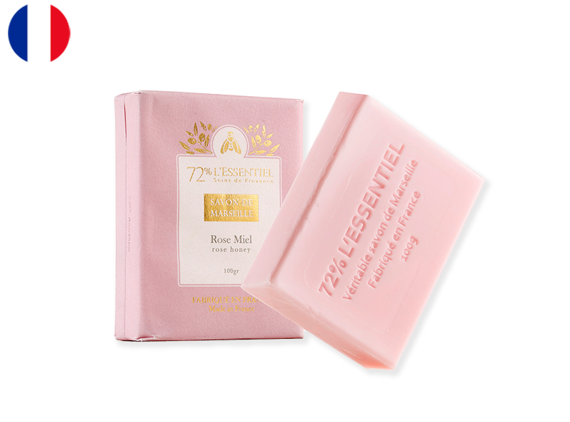 Scented “Savon de Marseille” handmade soap, with Rose Honey perfume. Perfect as a gift or for personal care.