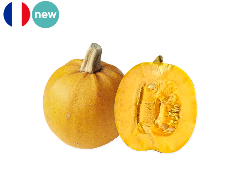 A Squash, Jaspée de Vendée is a vibrant orange and green striped summer squash, prized for its tender flesh and sweet, nutty flavor. This variety is typically harvested when medium-sized, offering a crisp texture and delicate taste.