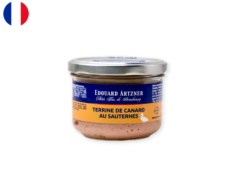 Indulge in the rich, smooth texture of our Terrine with Duck and Sauternes, a gourmet delicacy that combines the tender meat of duck with the sweet, aromatic notes of Sauternes wine. This terrine is carefully crafted to deliver a luxurious flavour experience that is both sophisticated and satisfying.