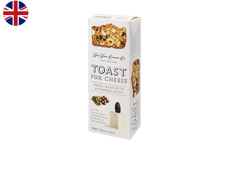 Crafted in the historic city of Bath, England, these thin, light, and exceptionally crisp toasts are baked twice to achieve a perfect biscotti-like crunch. Uniquely studded with luscious dates, crunchy hazelnuts, and wholesome pumpkin seeds, they offer a delightful blend of natural sweetness and nutty texture.