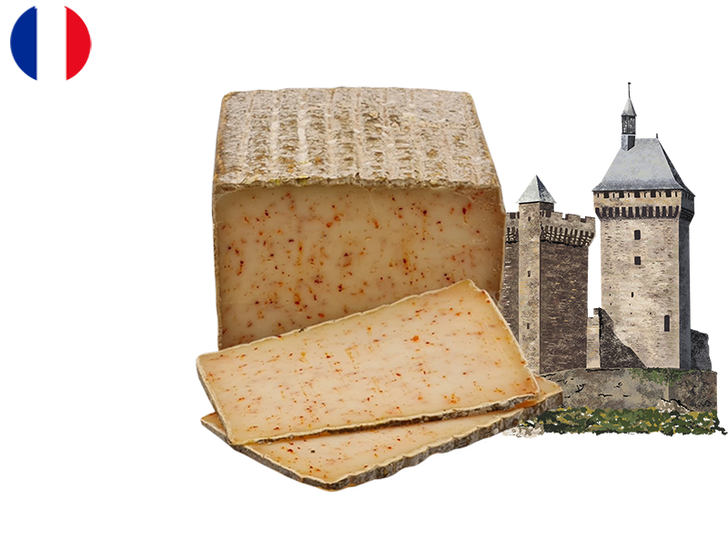 <strong>A rustic sheep’s milk tomme from the French Pyrenees, elevated by the vibrant warmth of Espelette pepper</strong>, this cheese embodies the spirit of the Basque country where tradition and flavor converge. <strong>Crafted from pure ewe’s milk using time-honored methods</strong>, the tomme develops a natural, grayish rind that gives way to a dense, supple paste with a clean, nutty sweetness and subtle notes of toasted hazelnut and wild herbs. <strong>The addition of Espelette pepper—France’s beloved PDO chili from the Basque region—adds a gentle, smoky warmth that lingers on the palate</strong>, never overpowering but perfectly complementing the cheese’s rich, milky character. <strong>Perfect for a rustic cheese board, melted over grilled vegetables, or paired with a dry Jurançon or a light red from the southwest</strong>, Tomme Pur Brebis with Espelette Pepper is a celebration of Pyrenean craftsmanship—a cheese that balances earthy elegance with a whisper of Basque heat.